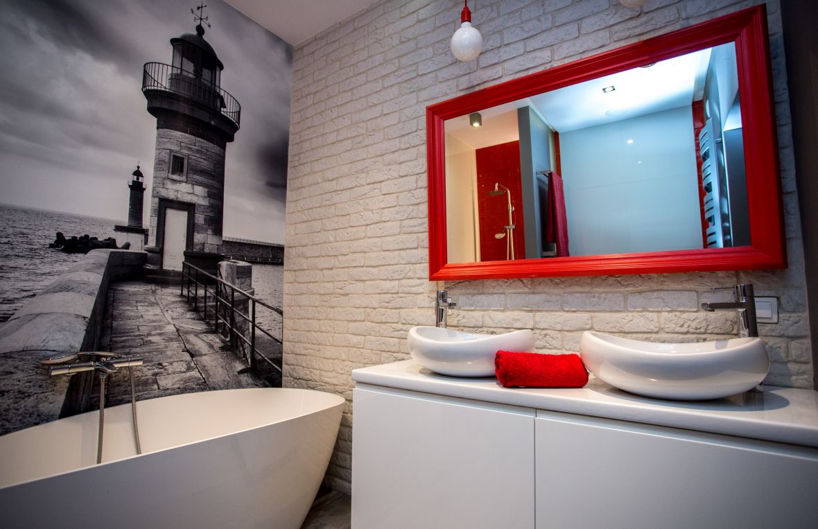 GORĄCA CZERWIEŃ W SZAREJ ŁAZIENCE