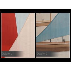 Idealnie wpisuje się w nowoczesne, skandynawskie lub marynistyczne wnętrza, dodając im świeżości i przestronności. Stonowana paleta barw i harmonijny układ kompozycji wprowadzają spokój, równowagę i subtelną dynamikę, ożywiając przestrzeń bez nadmiernej dominacji.