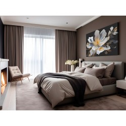 To dekoracja idealna do wnętrz w stylu glamour, nowoczesnym i minimalistycznym. Połączenie bieli, złota i czerni sprawia, że obraz świetnie komponuje się z eleganckimi dodatkami, podkreślając wyrafinowany styl pomieszczenia.